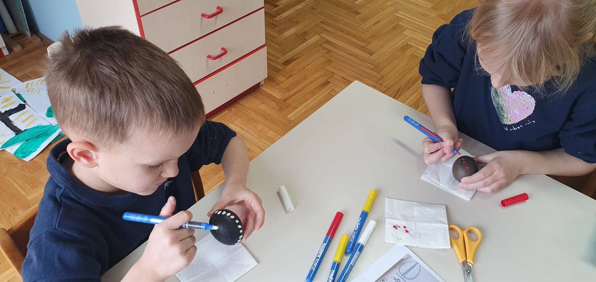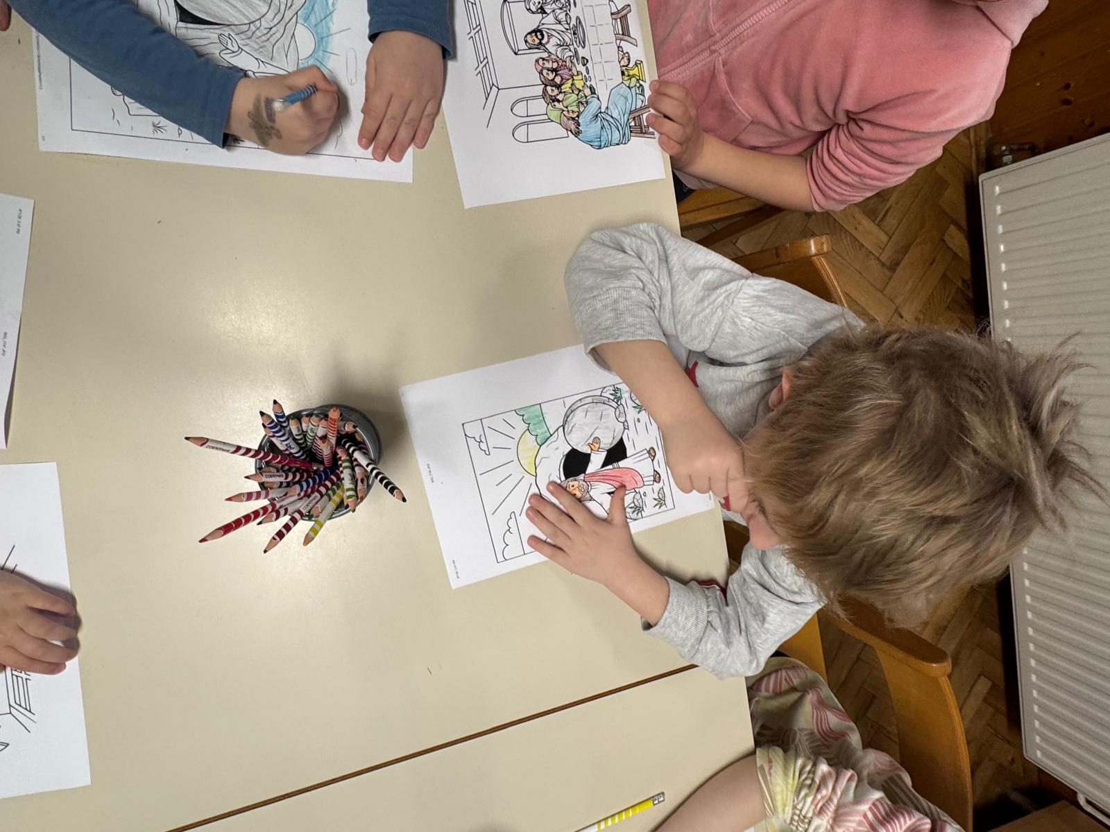 Osim toga, kroz razne aktivnosti pripremali smo se za dolazak najvećeg blagdana – Uskrsa. Neke od aktivnosti bile su razne prispodobe, Isusov ulazak u Jeruzalem – Cvjetnica, izrada košarica te ukrašavanje pisanica u tradicionalnom stilu. Veliki četvrtak obilježili smo na, kao i uvijek, poseban i svečan način, pripremivši prikaz Večere Gospodnje u našim skupinama uz kruh i „vino“ za stolom. Mnogobrojnim i kreativnim likovnim radovima prikazali smo radost Isusova uskrsnuća.